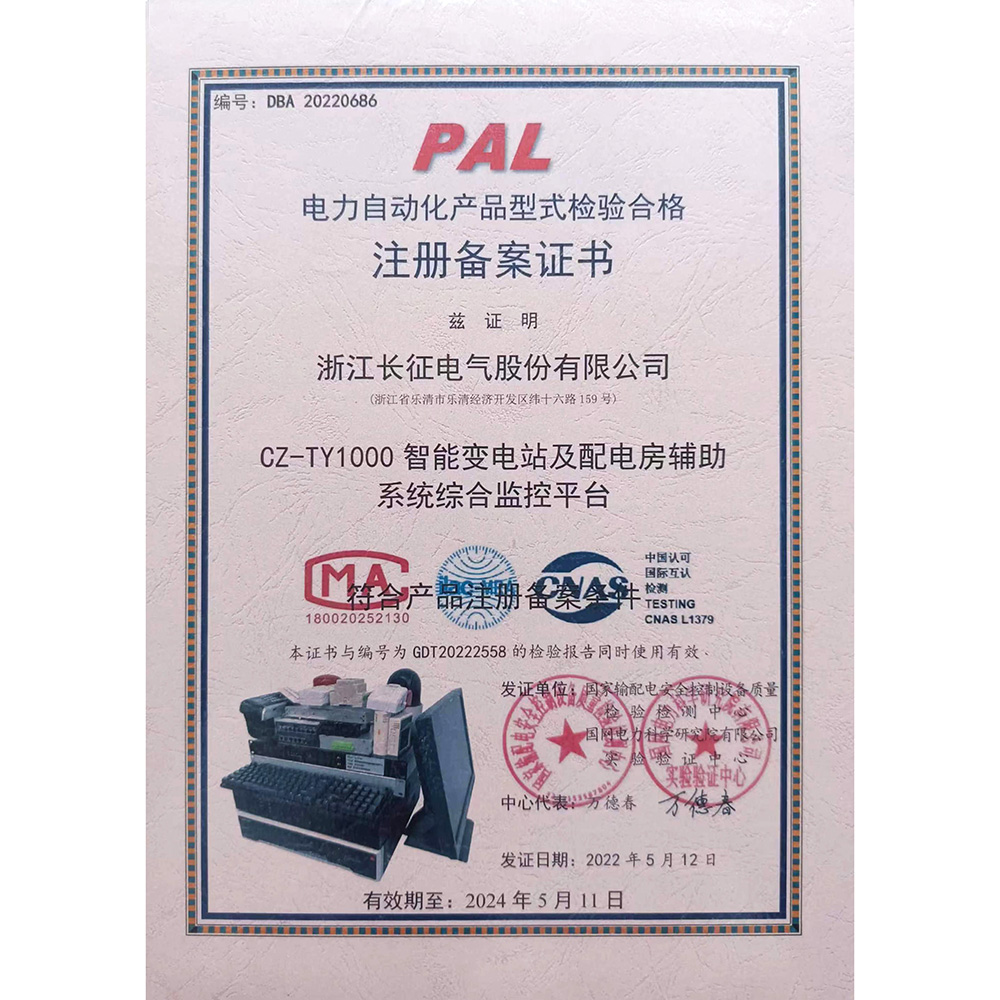 电力自动化产品型式检验合格注册备案证书